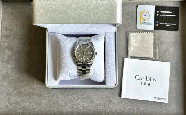 Cadisen DateJust Meteorite Dial Automatic Men 40mm is in brand new condition with complete box and papers. For better representation of condition please check the additional pictures attached to this listing. Watch comes with Cadisen branded box and company paper work. Cadisen DateJust Meteorite Dial Automatic comes with 1 year of PakWC official movement warranty.