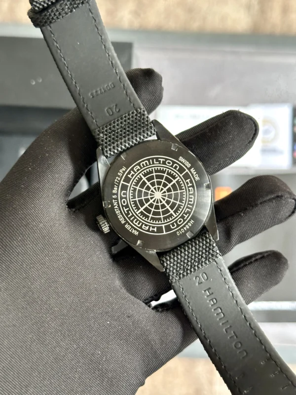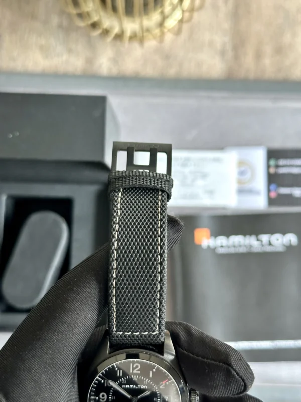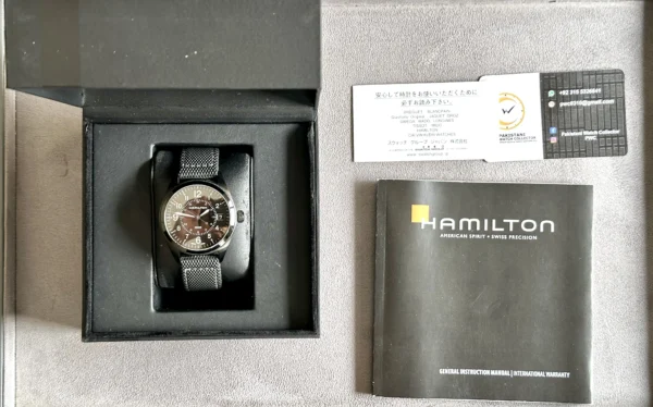 Hamilton Khaki Field Quartz Black PVD Men H68401735 40mm is in preloved condition with original Hamilton box and manual booklet. Watch is overall in 90% condition. For more better representation of the condition please check the original pictures attached to this listing. Watch comes with Hamilton branded box and manual booklet. Watch comes with 1 year of official PakWC movement warranty