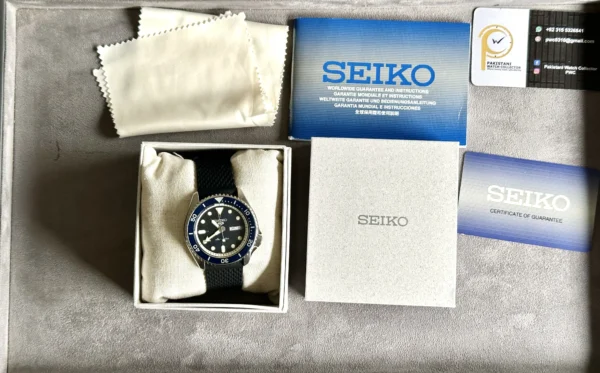 Seiko 5 Sports Blue Dial Automatic Men SRPD71K2 42.5mm is in brand new condition with complete box, tag and papers. For better representation of condition please check the original pictures attached to this listing. Watch comes with tag, branded Seiko box and company paper work. Seiko 5 Sports SRPD71K2 Blue Dial comes with 1 year of PakWC official movement warranty. Watch packaging varies region to region procurement. So you might get different packaging other than shown in pictures but it will be with original Seiko box and papers.
