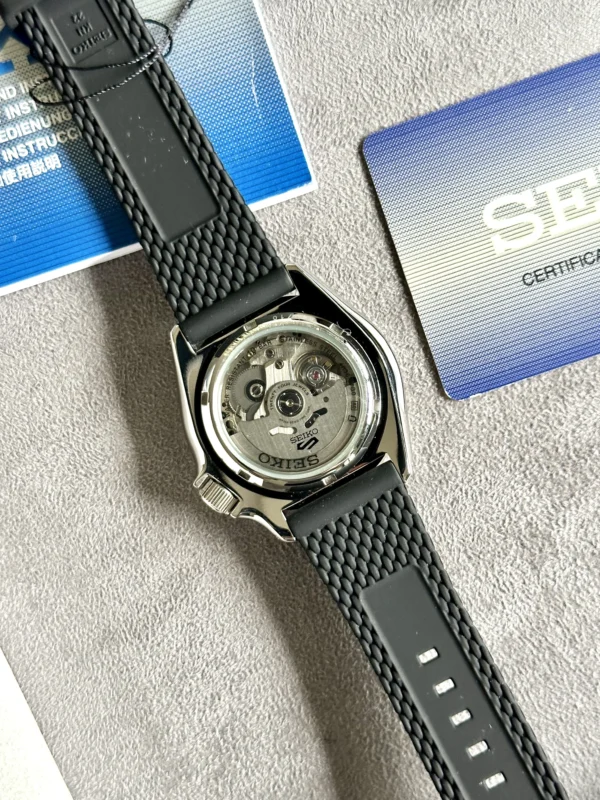 Case is made of stainless steel along with black patterned silicone/rubber strap. Case size is 42.5mm, 46mm lug to lug and case thickness is 13.4mm. In addition, Case back is see-through. Band size is 22mm. Hardlex crystal/glass. Beautiful sunburst blue color inner dial with silver tone hands and hour markers. Day and date window. Luminous hands and hour markers. Uni-Directional stainless steel bezel with blue color bezel insert. Caliber 4R36 automatic movement with manual winding capacity having 41 hours of power reserve approximately. 10 bar water resistance.