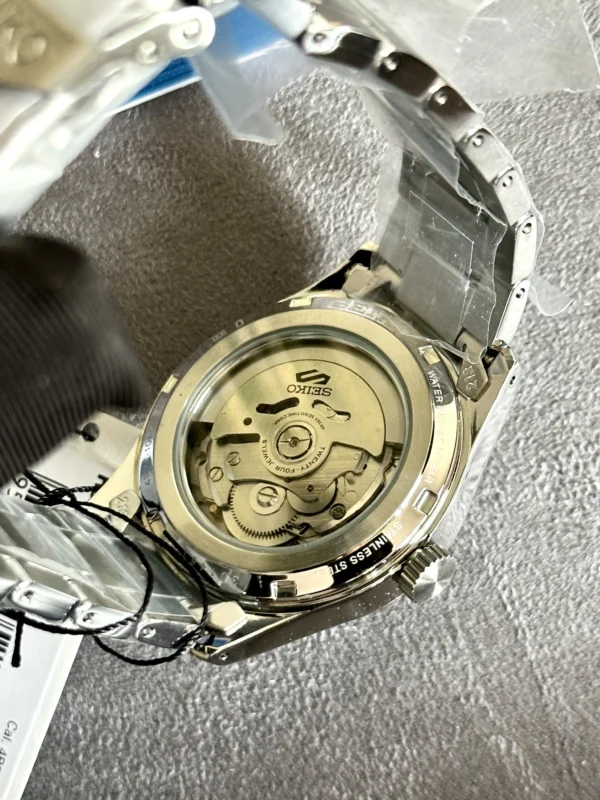 Case and bracelet is made of stainless steel. Case size is 39.4mm, 48.1mm lug to lug and case thickness is 13.2mm. In addition, Case back is see-through. Band size is 20mm. Pull-Push crown. Curved hardlex crystal/glass. Classic black color inner dial with silver tone hands and hour markers with luminous. Day and date window. 4R36 automatic movement with manual winding capacity. 100 meters water resistance.